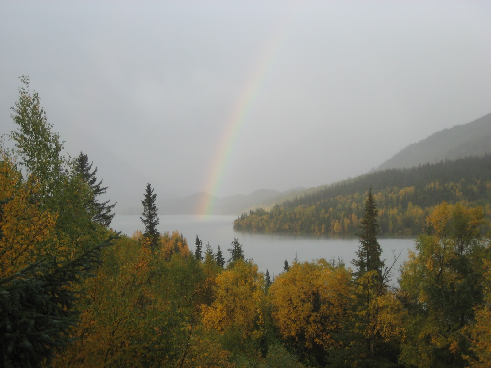 Rainbow on Trail Lake as seen from the Steller Jay Chalet